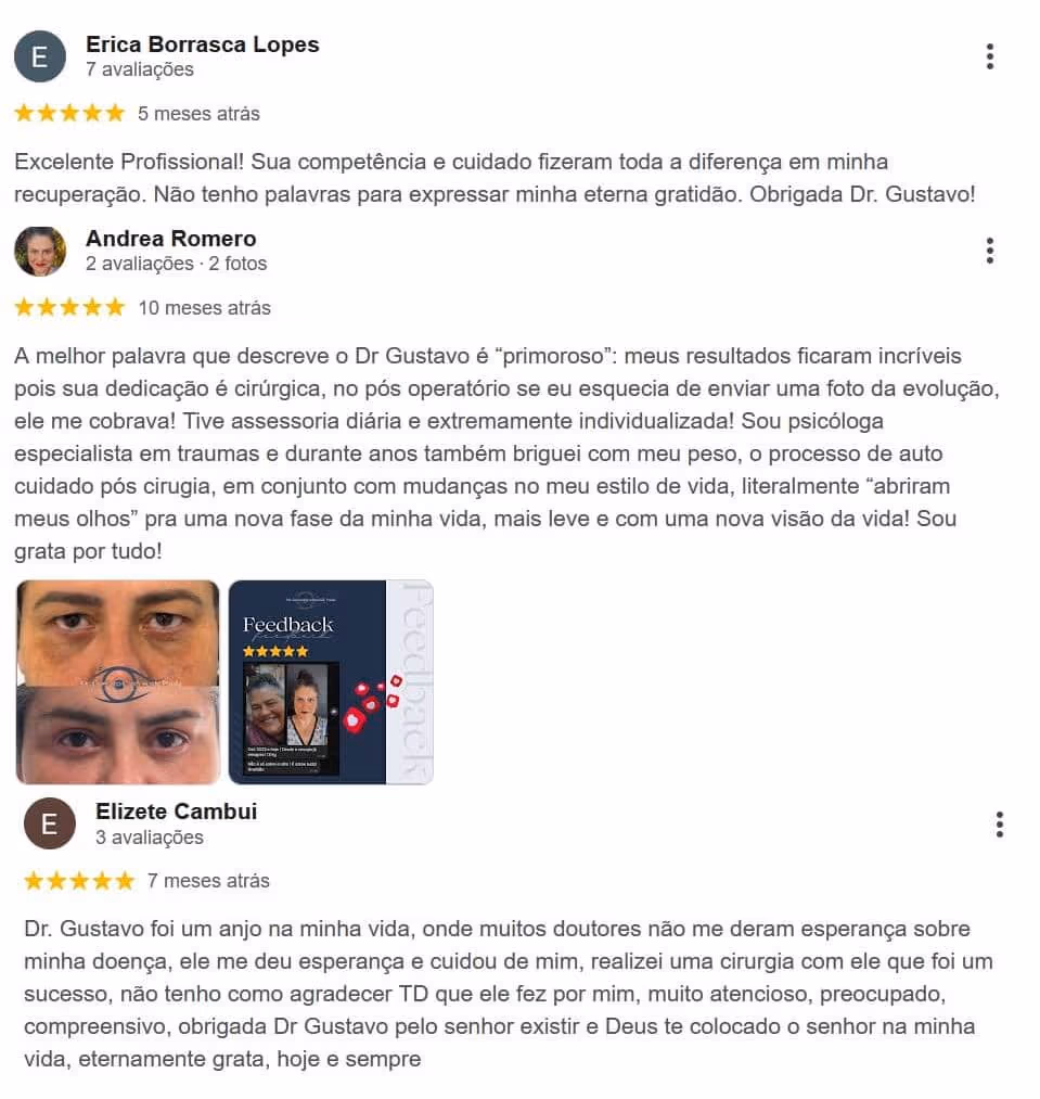“Fiz cirurgia refrativa com o Dr. Lucca e o resultado foi perfeito. Acordei no outro dia enxergando 100% sem óculos. Equipe atenciosa e clínica impecável.”